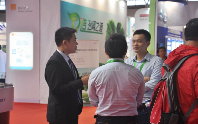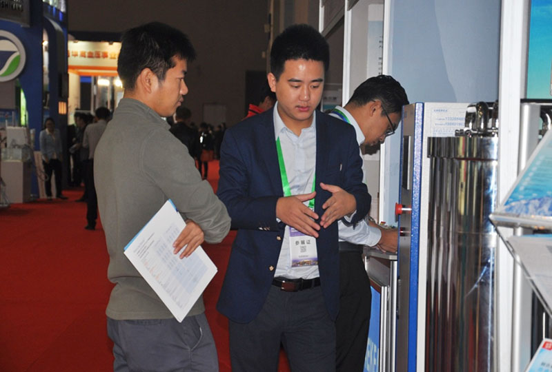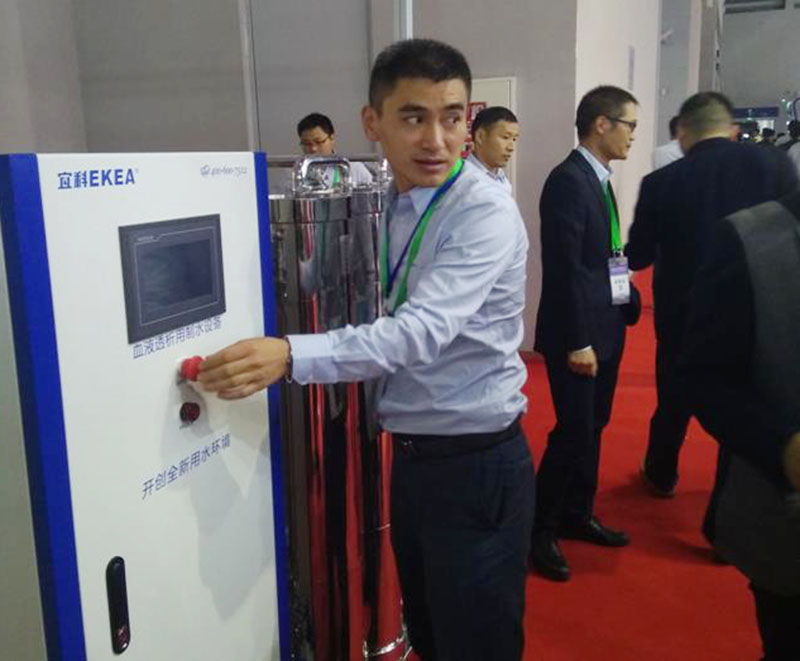 我公司营销团队成员接待前来四川宜科纯水设备公司展位了解设备销售情况的广东省渠道客户,为其讲解介绍合作模式及产品优势。